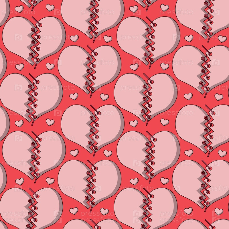 Бесшовный узор с разбитым сердцем, связанным нитями