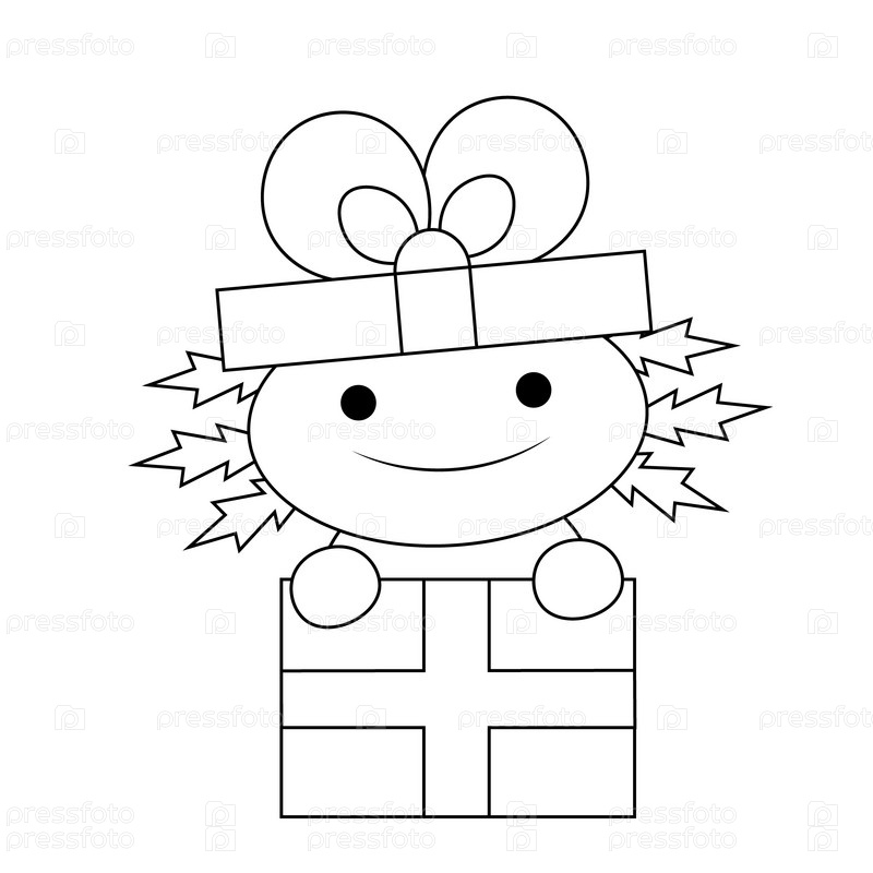 Милый мультяшный аксолотль в подарочной коробке в черно-белом цвете