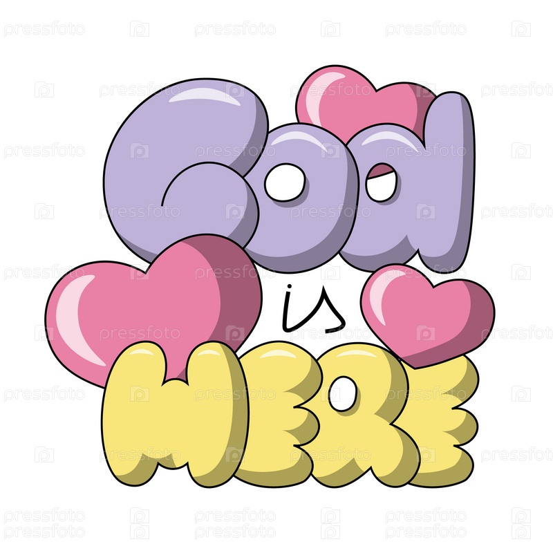 Мультяшный пузырь Надпись фразы "Бог здесь" в цвете
