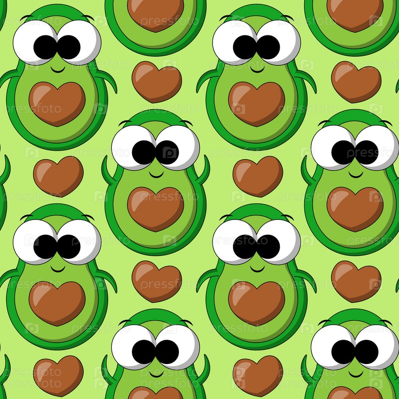 Бесшовный узор с милым авокадо с сердцем