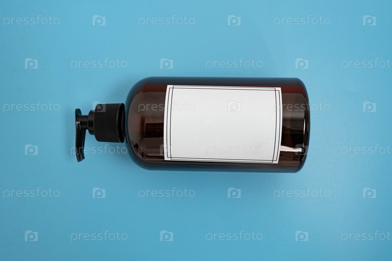 Уход за телом. бутылка с дозаторами на синем фоне. Рекламная концепция