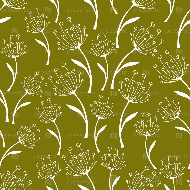 Ботанический узор из белых веток на зеленом