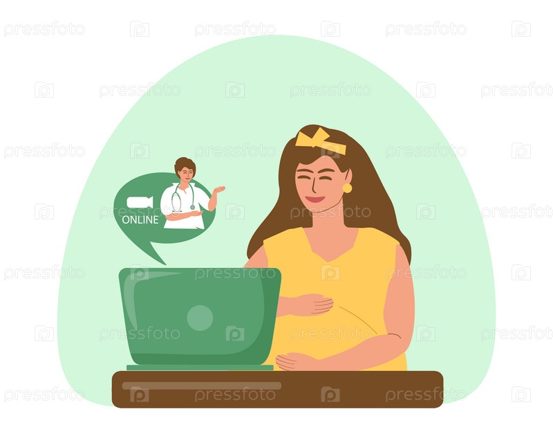Беременная женщина общается с врачом по видеозвонку