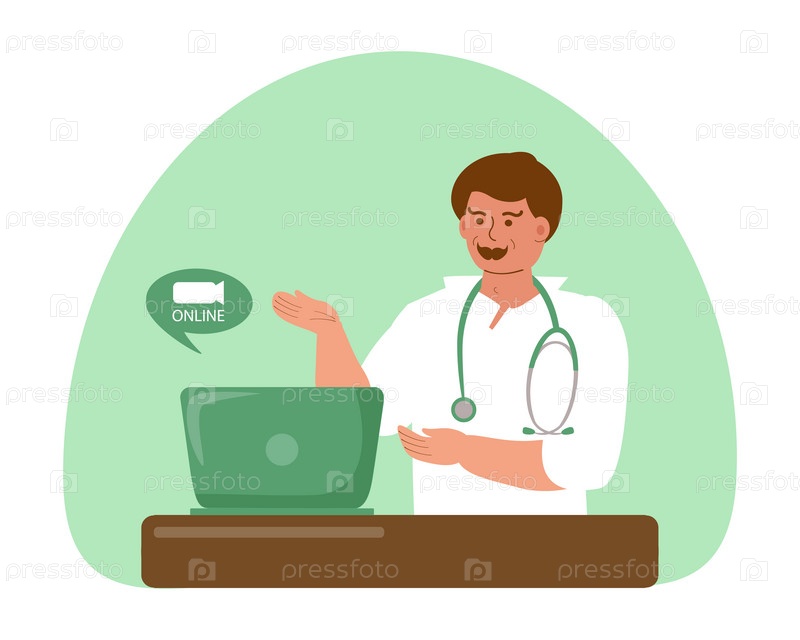 Доктор мужчина проводит онлайн-консультацию