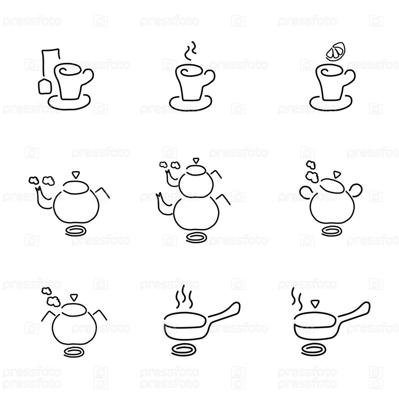 Набор линейных иконок кухонной утвари
