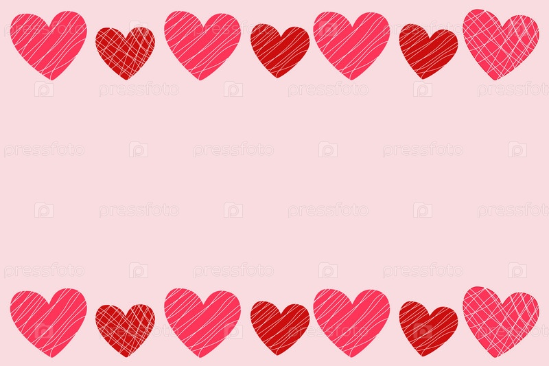 Розовый баннер с рамкой из красных и розовых сердечек