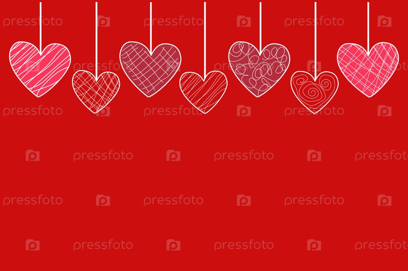 Красный праздничный фон с красными и розовыми сердечками