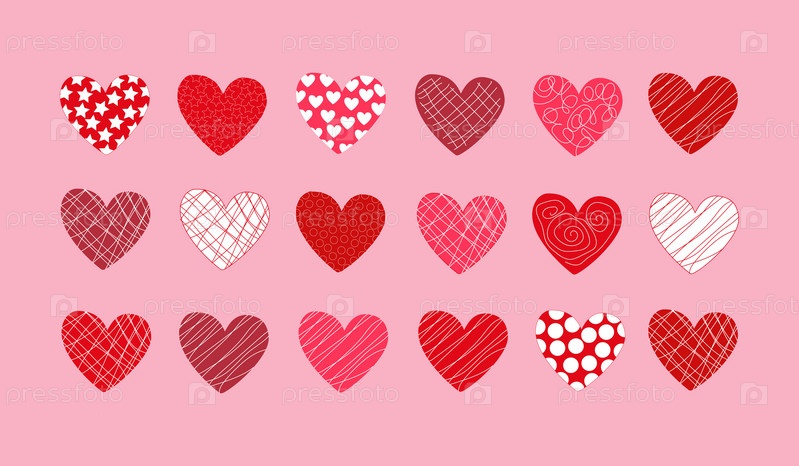Набор красных, розовых и фиолетовых сердечек, конфет с глазурью