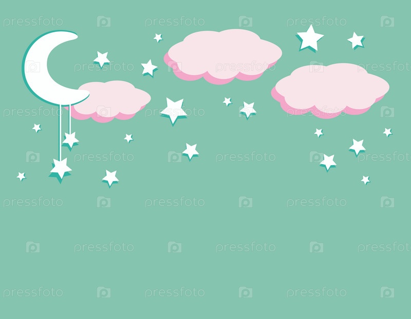 Детский фон с розовыми облаками, белой луной и звездами