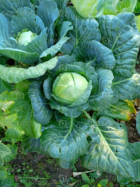 Белокочанная капуста с листьями, обглоданными улиткой