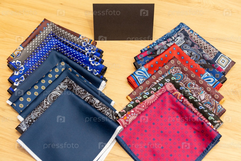 Набор стильных мужских носовых платков к деловому костюму на прилавке бутика