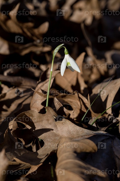 В горах растет красивая, редкая снежинка (Galanthus nivalis)