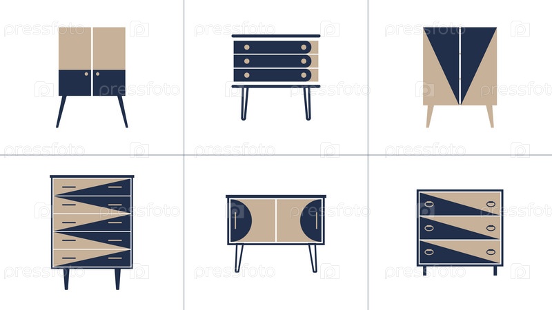 Комоды, тумбочки. Двухцветные иконки в плоском стиле