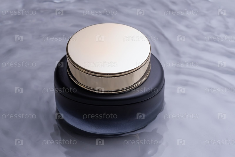Баночка роскошного крема для лица в воде. Косметический макет. косметические продукты и средства по уходу за кожей, концепция косметической науки