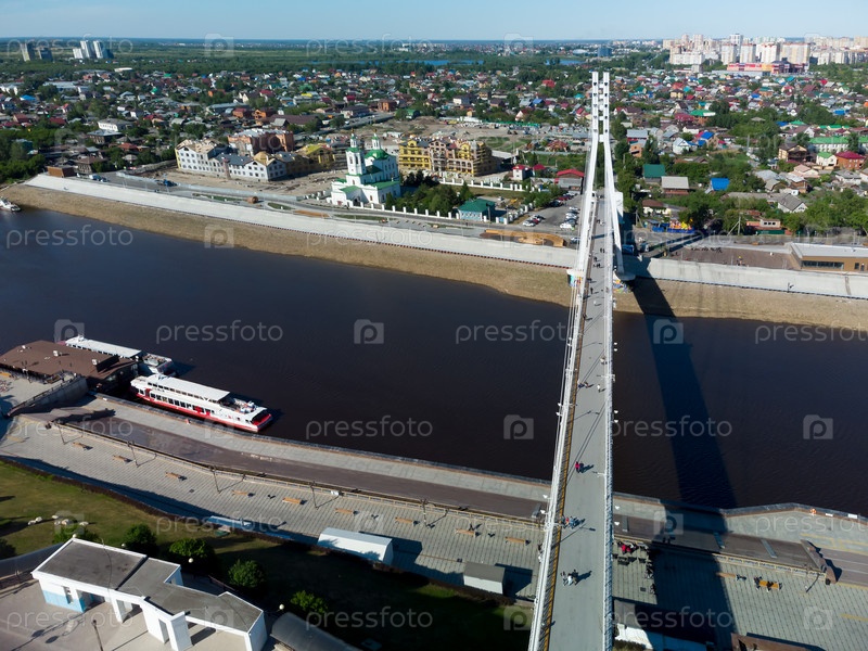 Мост влюбленных и церковь. Тюмень. Россия