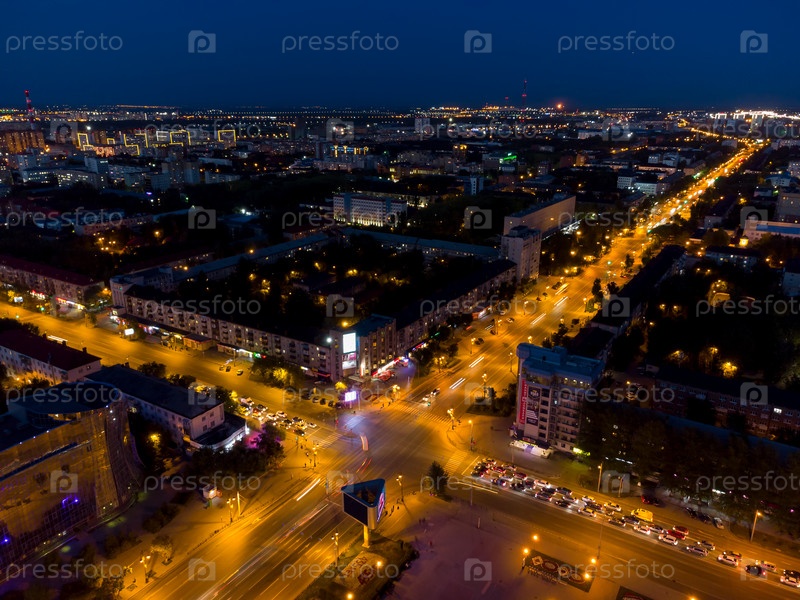 Пересечение дорог, вид сверху, летняя ночь, Тюмень