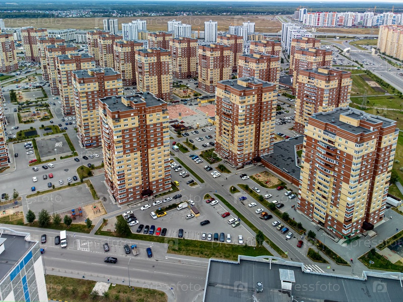 Вид с высоты птичьего полета на жилой район. Тюмень