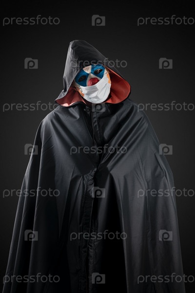 Клоун на темном фоне в медицинской маске