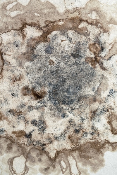 Крупный план пятна плесени на стене или потолке. Грибковая сырость. Абстракция, опасная
