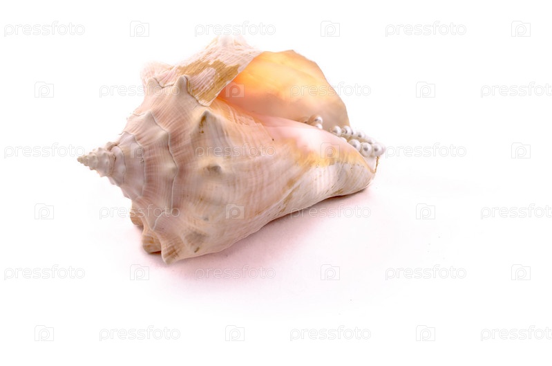 Большая морская ракушка на белом фоне