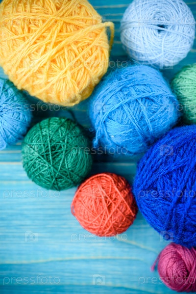 Клубки пряжи на древнем синем фоне