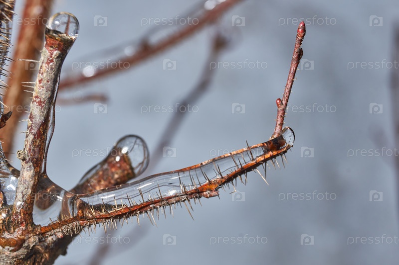 Растения после ледяного дождя. Ветви растений и побеги покрыты льдом. Ледяные ветки растений, последствия ледяного дождя