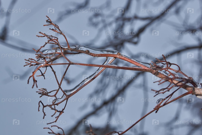 Растения после ледяного дождя. Ветви растений и побеги покрыты льдом. Ледяные ветки растений, последствия ледяного дождя