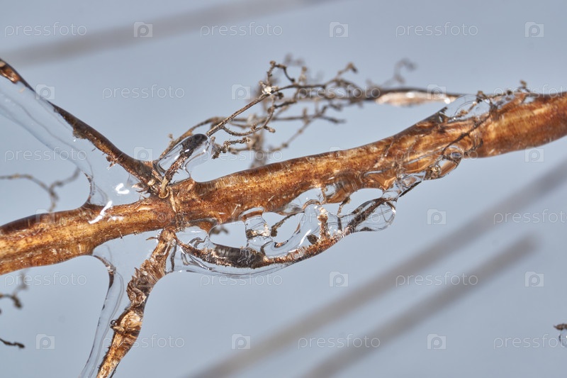 Растения после ледяного дождя. Ветви растений и побеги покрыты льдом. Ледяные ветки растений, последствия ледяного дождя