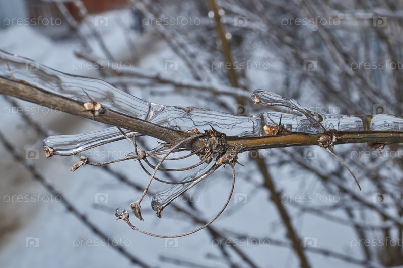 Растения после ледяного дождя. Ветви растений и побеги покрыты льдом. Ледяные ветки растений, последствия ледяного дождя