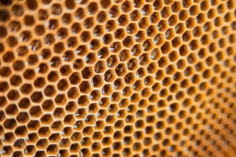 Рамка с пчелами и медом, сотовые ячейки крупным планом