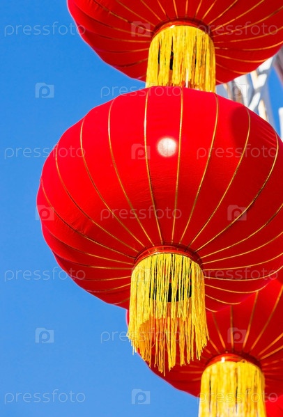 Китайские красные рождественские фонарики на Тверской улице в Москве. Крупный план. Первая в истории встреча Китайского Нового 2024 года в Москве