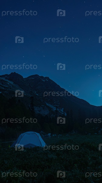 Кемпинг в лесу. Красивое ночное небо. Спать в палатке