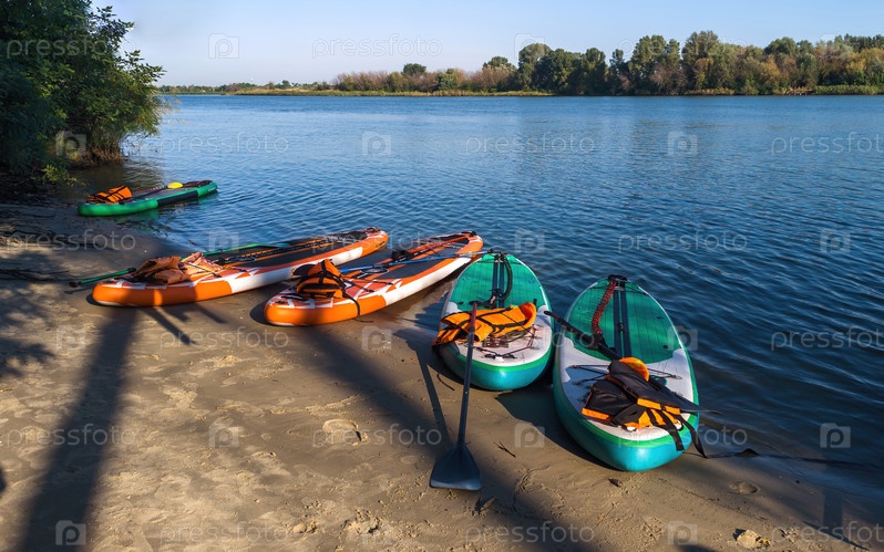 Доски для серфинга на воде во время восхода солнца