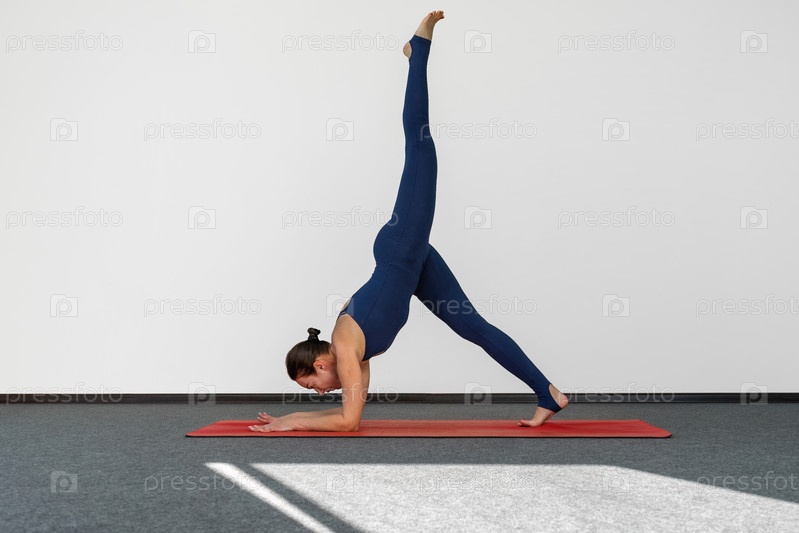 Портрет красивой молодой женщины в спортивной одежде, занимающейся йогой в помещении. Девушка-тренер