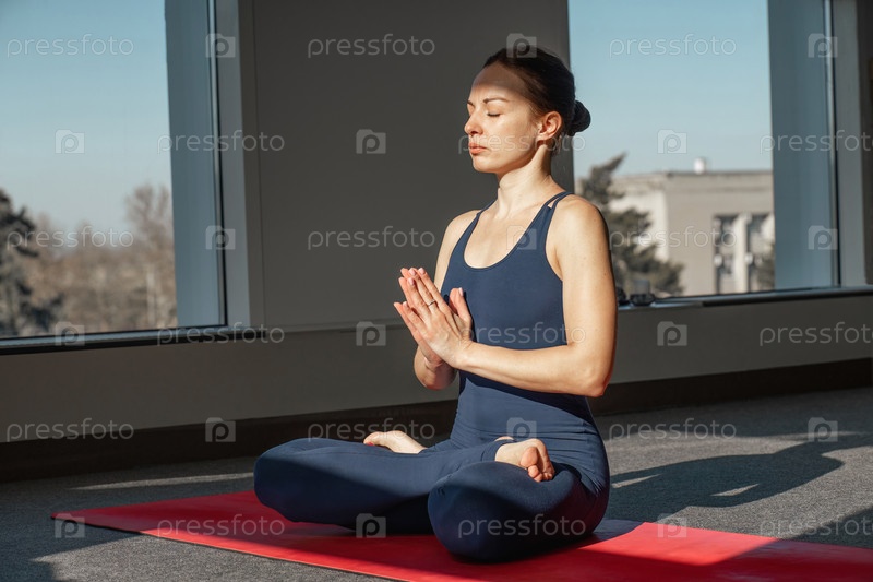 Портрет красивой молодой женщины в спортивной одежде, занимающейся йогой в помещении. Девушка-тренер