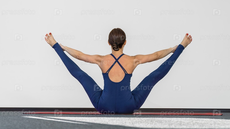 Портрет красивой молодой женщины в спортивной одежде, занимающейся йогой в помещении. Девушка-тренер