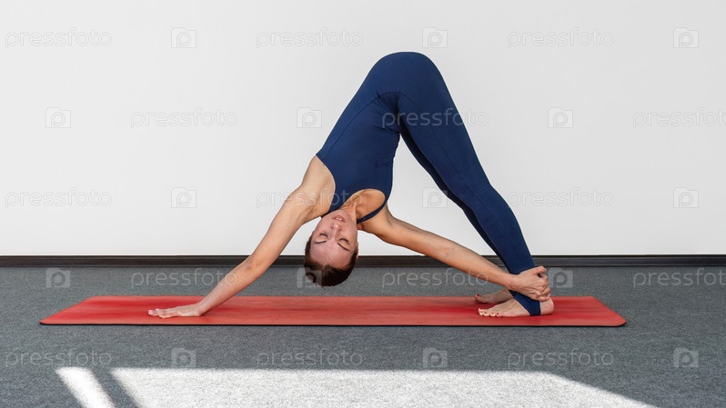Портрет красивой молодой женщины в спортивной одежде, занимающейся йогой в помещении. Девушка-тренер
