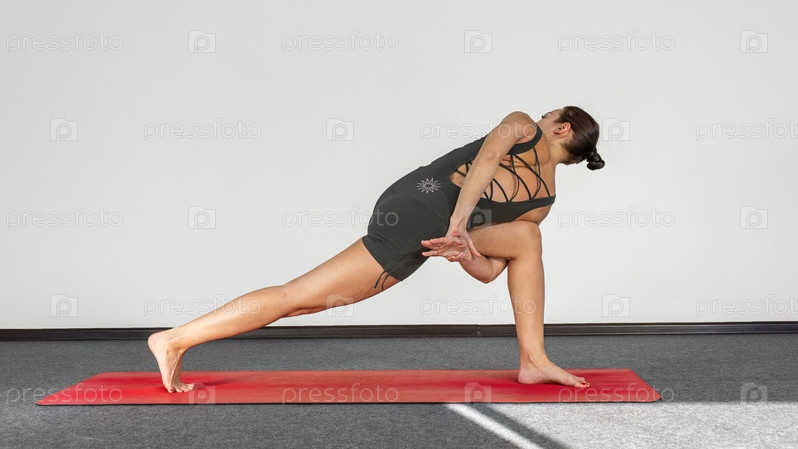 Портрет красивой молодой женщины в спортивной одежде, занимающейся йогой в помещении. Девушка-тренер