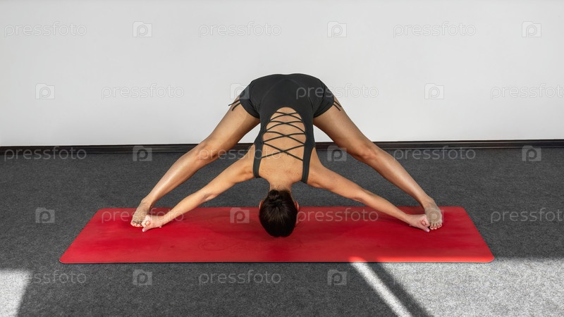 Портрет красивой молодой женщины в спортивной одежде, занимающейся йогой в помещении. Девушка-тренер