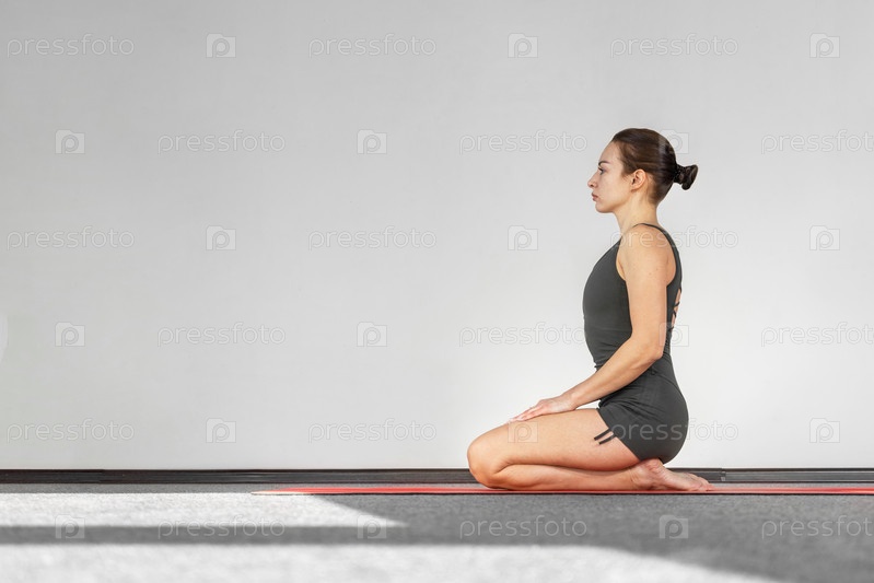 Портрет красивой молодой женщины в спортивной одежде, занимающейся йогой в помещении. Девушка-тренер