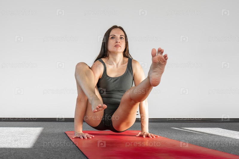 Портрет красивой молодой женщины в спортивной одежде, занимающейся йогой в помещении. Девушка-тренер