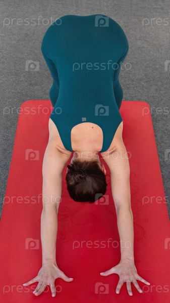 Растяжка, йога и женщина на красной дорожке для тренировок, упражнений. Ноги, растяжка и леди с гибкими тренировками по фитнесу или пилатесу для баланса, медитации или хорошего самочувствия