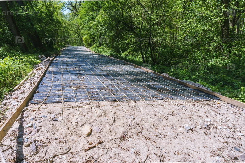 Строительство дорог. Строительство велосипедных дорожек. Создание тротуара в лесу. Опалубка тротуара