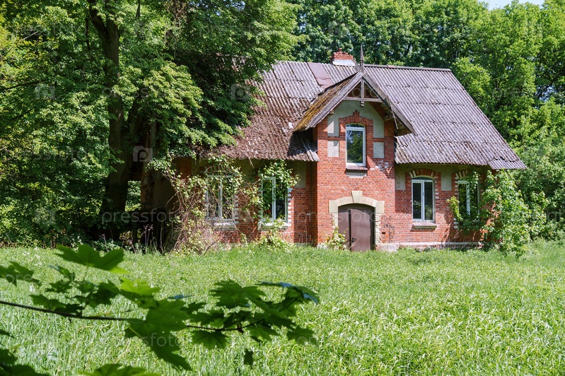 Дом в лесу. Дом из красного кирпича в лесу. Дом охотника-лесника