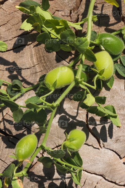 Зеленые стручки нута на ветке на деревянном фоне