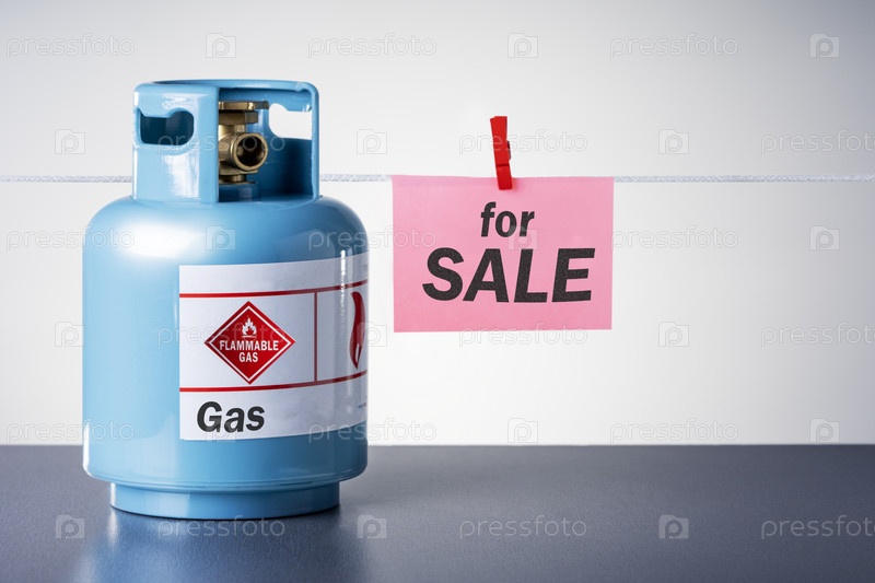 Продам газовый баллон. Баллон с синим газом и текст ПРОДАЕТСЯ