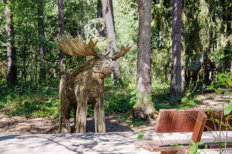 Фигурка лося-оленя сплетена из прутьев. Арт-объект «Лось-олень» в заповеднике. Кристина Евстигнеева. Экологическая тропа