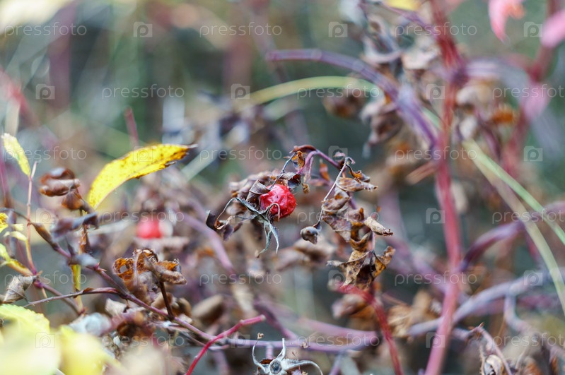 Красный шиповник на фоне боке. Осенний фон. Фон для осенних открыток