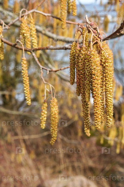 Деревья зацвели весной. Серьги на дереве Береза и Ольха