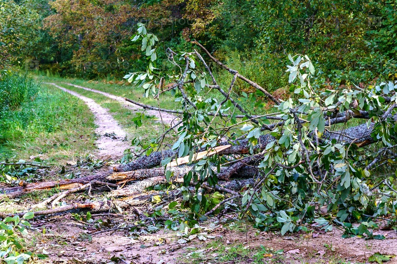 Осенний лес. Лес после грозы. Дерево упало на дорогу